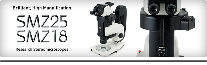 Nikon vyrábí stereomikroskopy v různých úrovních výbavy od jednoduchých dílenských stereomikroskopů, přes laboratorní stereomikroskopy až po badatelské stereomikroskopy. Všechny stereomikroskopy Nikon mají ergonomický dizajn, robustní mechanickou konstrukci a vysoce kvalitní optiku. Náš badatelský stereomikroskop Nikon SMZ25 má v současné době největší zoomový poměr (25:1) na světě. Ve spojení s plan apochromatickými objektivy se jedná o dokonalý nástroj pro pozorování mikrosvěta.